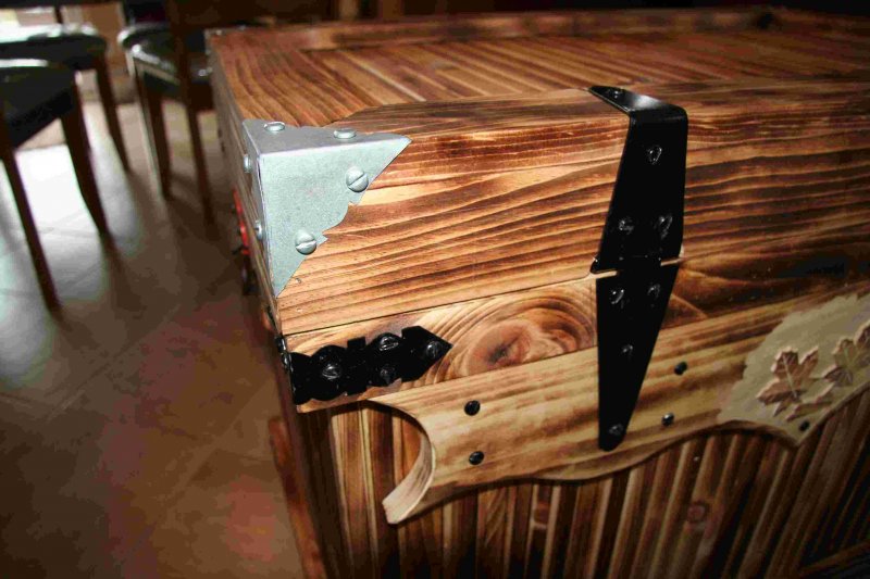 L’intérieur est en cœur de porte (les trous de fenêtres) et les joints sont tirés au silicone. La sculpture au dos est composée de deux feuilles d’érable à sucre (Acer Saccharum, pour les intimes) Vive le Québec haha