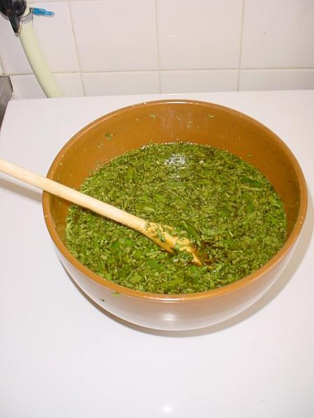 Pour la macération, avec les herbes, je fais ça dans le saladier mais avec un couvercle dessus.