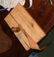 Comme cette languette doit avoir la même perforation que les autres cuirs, j’utilise un des gros cuirs pour servir de modèle pour la perforation...