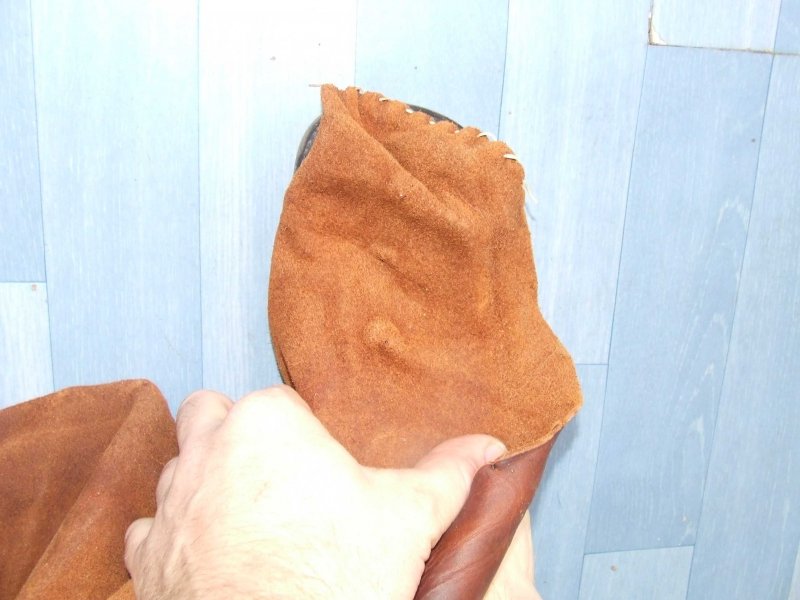 Pensez à laisser le dessus du pied ouvert sur le devant du tibia, vous refermerez ensuite avec un lacet en cuir.