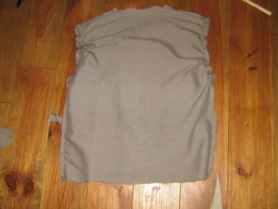 Maintenant, on rembourre! L'efficacité de votre gambison va dépendre du type de matériaux utilisé et de la densité du rembourrage. Le miens me permet de porter une maille confortablement et doit sans doute avoir la résistance mécanique nécessaire pour un coup d'épée en acier occasionnel. Si vous voulez faire un vrai gambison, voyez les détails à la fin de l'article.