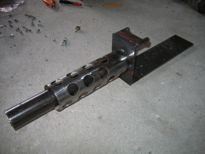 Perçage des passage de billes, il restera le passage du câble électrique. Vue (presque) finie avec le support (m'enfin reste quand même encore bcp de trucs à faire):