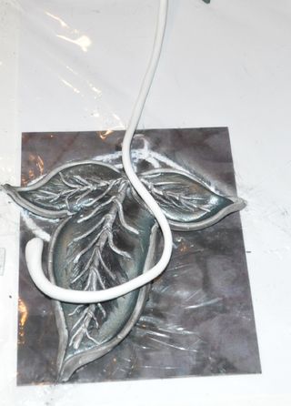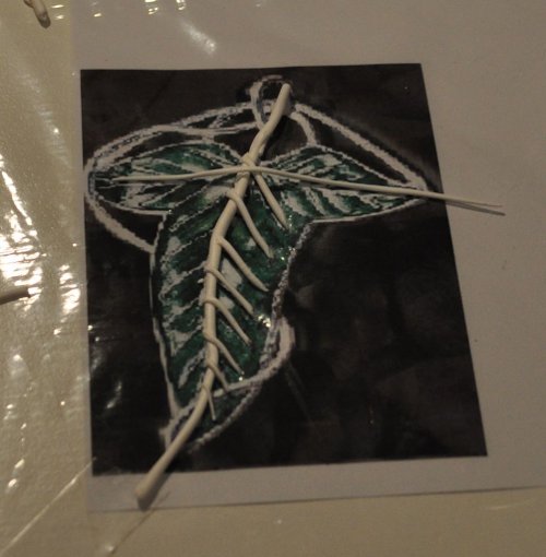 Déposez les veines sur la broche. Appliquez (encore) de la poudre noire entre les veines.