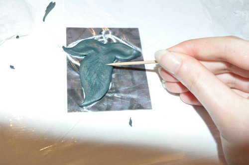 Utilisez ensuite une épingle pour percer la pâte là où vous souhaitez accrocher la broche.