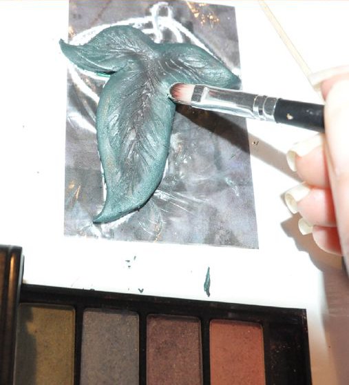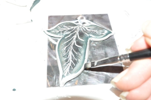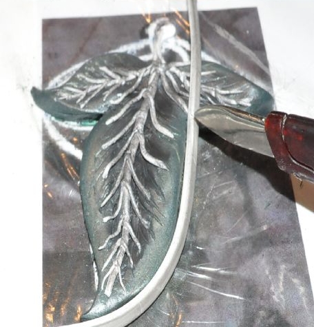 En utilisant le manche d'un pinceau, sculptez un renfoncement à l'intérieur de la feuille.