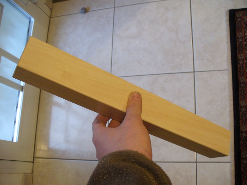 Puis les pieds de la table : parquet du côté intérieur et métal de du côté extérieur. Même principe que précédemment pour le métal. Je biseaute les bords pour le parquet !