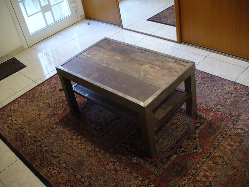 Puis je fais le "tour" de la table en métal. Pour faire l'angle droit, un bon marteau et une boîte de pansement et un peu de forge à froid !