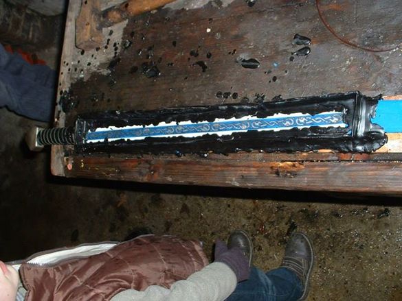 Il faut plonger la lame dans l'acide. Comme je n'en ai pas assez, j'ai fabriquer un bac à acide en cire de moulage sur la lame.