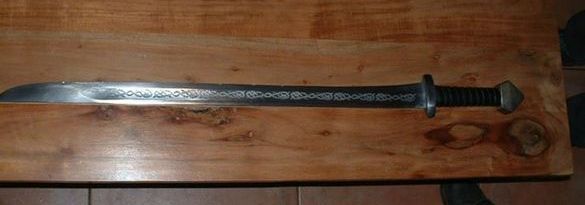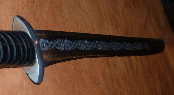 Pour un ami, j'ai gravé des motifs viking sur sa longsax de reconstitution viking